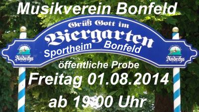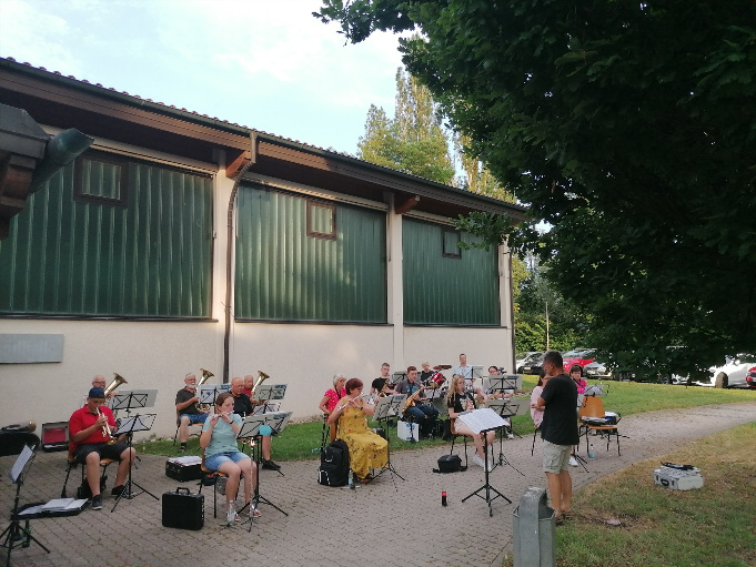 Am 01.August fand unsere letzte Probe vor der Sommerpause statt. Zum ersten Mal gestalteten wir diese Musikprobe als „Offene Probe“ im Biergarten des Sportheims in Bonfeld. Bei gutem Wetter, bester Bewirtung durch Sportheim-Wirt Steffen und zahlreichen Zuhörern war dies ein rundum gelungener Abend, den wir gerne einmal wiederholen werden.