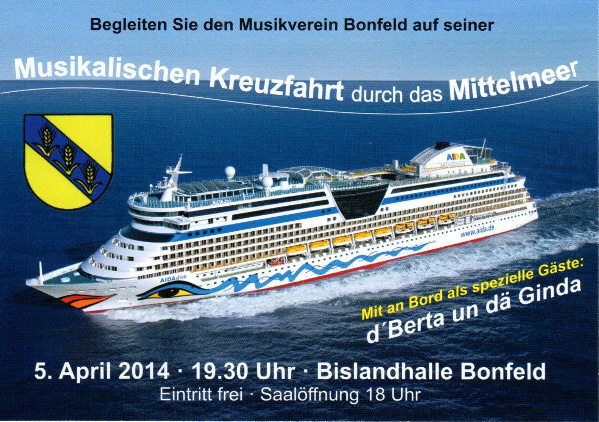 Wir möchten uns an dieser Stelle recht herzlich bei unseren "Passagieren" bedanken, die unser diesjähriges Jahreskonzert besucht haben. Obwohl in der stimmungsvoll geschmückten Bisland-Halle noch einige Plätze frei blieben, war es musikalisch und kulinarisch ein sehr schöner Abend.