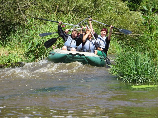 Gruppe 1 bestieg einige Kanus und unternahm einen lustigen aber auch anstrengenden Rafting-Ausflug.