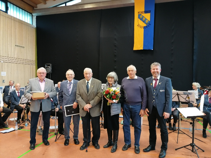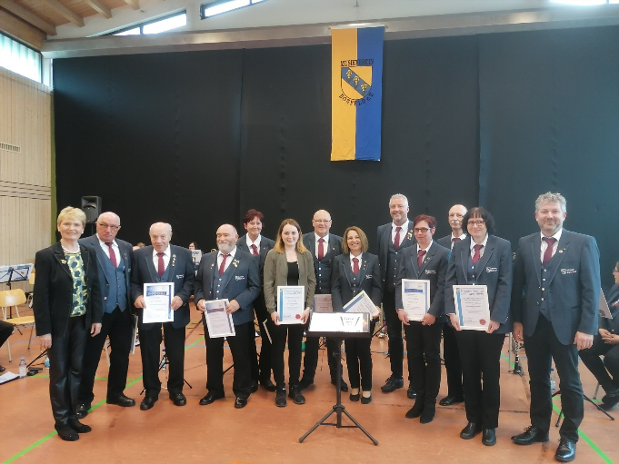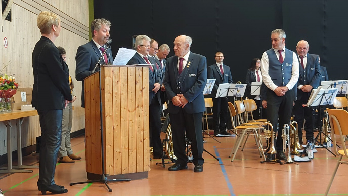 Für 10jähriges aktives Musizieren wurde Timo Reichert /Es-Alt - Saxophon mit einem Gutschein und einer Urkunde geehrt, Franz Schattmann erhielt für seine 70jährige passive Mitgliedschaft ebenfalls eine Urkunde und ein Präsent.