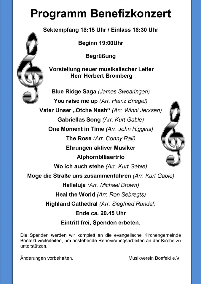 Liebe Musikfreunde aus Marbach, Affalterbach und Bonfeld,