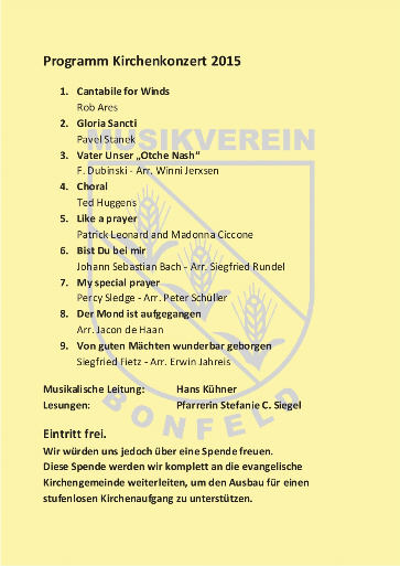 V O R S C H A U: Kirchenkonzert am 04. Juli 2015